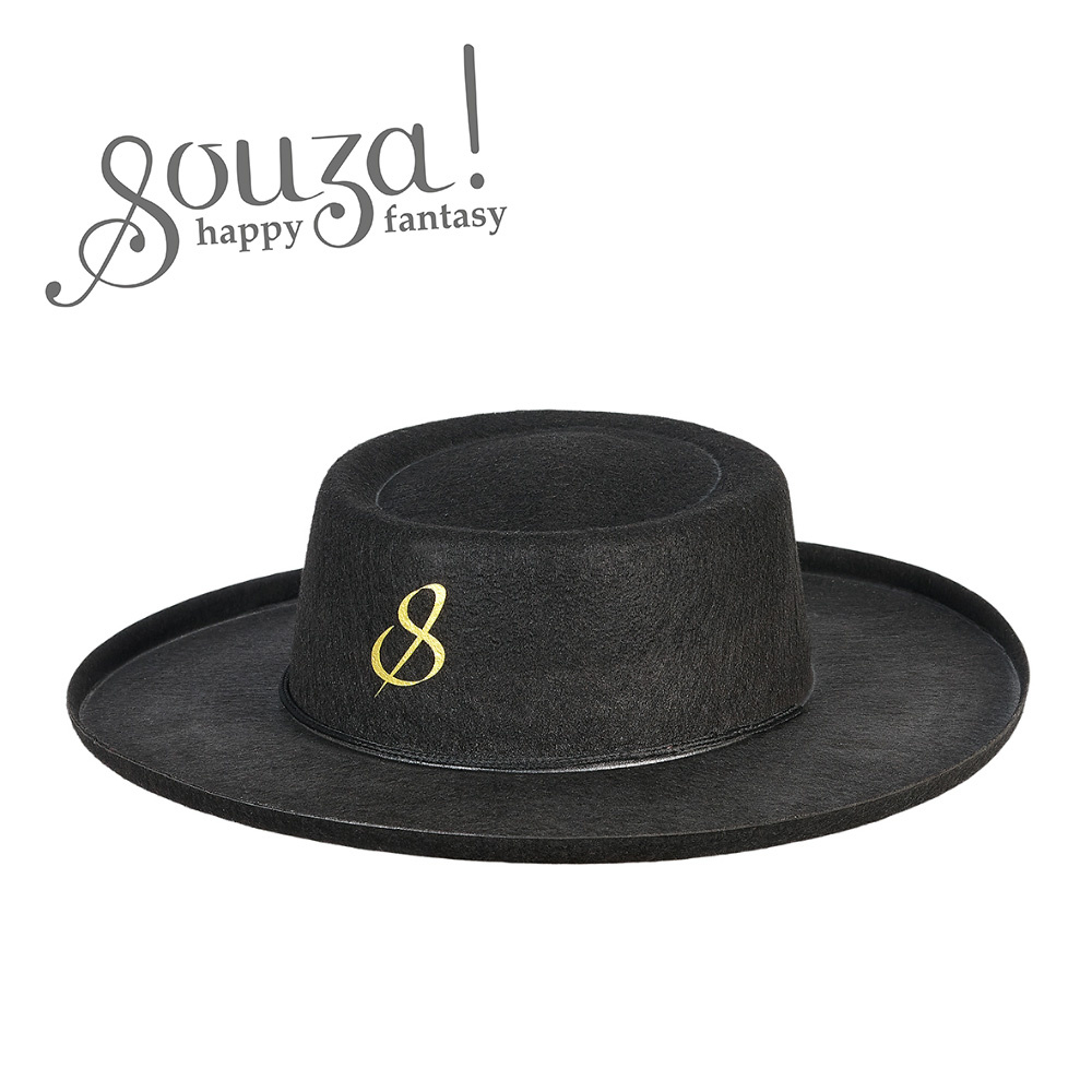 • Souza! Kapelusz muszkietera Vega – czarny filcowy z rondem i haftem. Dla dzieci od 3 lat. Idealny dodatek do kostiumu Zorro, balów i zabaw w odgrywanie ról.