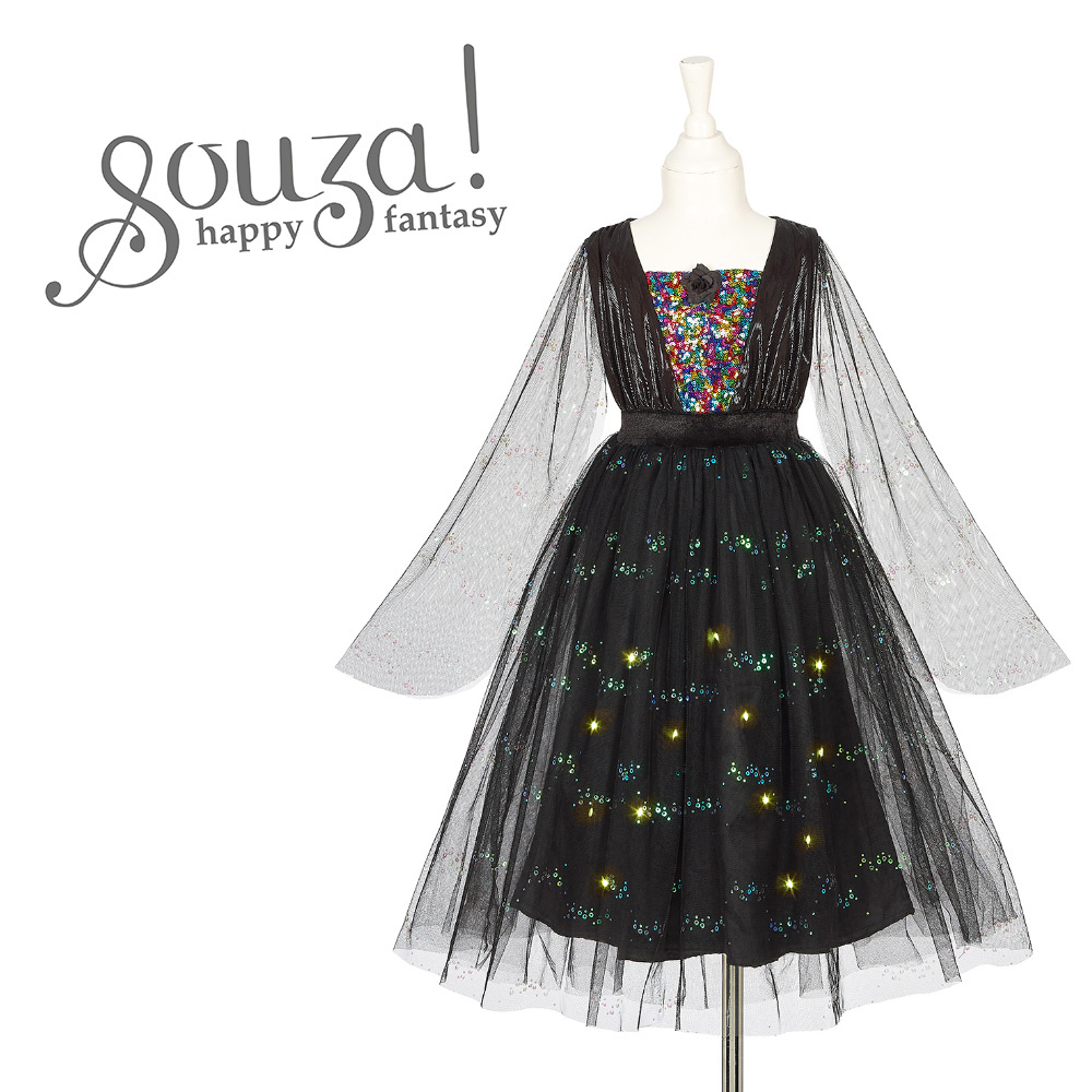 Souza! Kostium czarownica Agatha – sukienka tiulowa z cekinami i lampkami LED, 3–10 lat