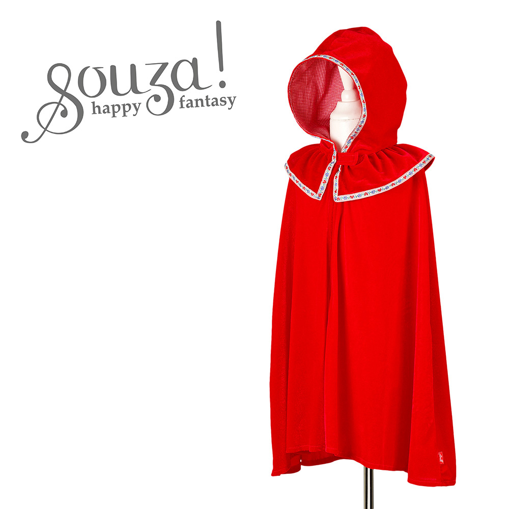 Peleryna wykonana jest z poliesteru. Produkt marki Souza! wyróżnia się starannością i wysoką jakością wykonania. Strój przeznaczony jest dla dzieci w wieku 4–8 lat (104–128 cm wzrostu). Długość peleryny: 64 cm.