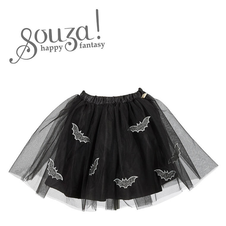 - Souza! Spódniczka Mathilde z czarnego tiulu i brokatowymi nietoperzami. Strój dla dziewczynki 4–7 lat. Idealna na Halloween, bal przebierańców i prezent.