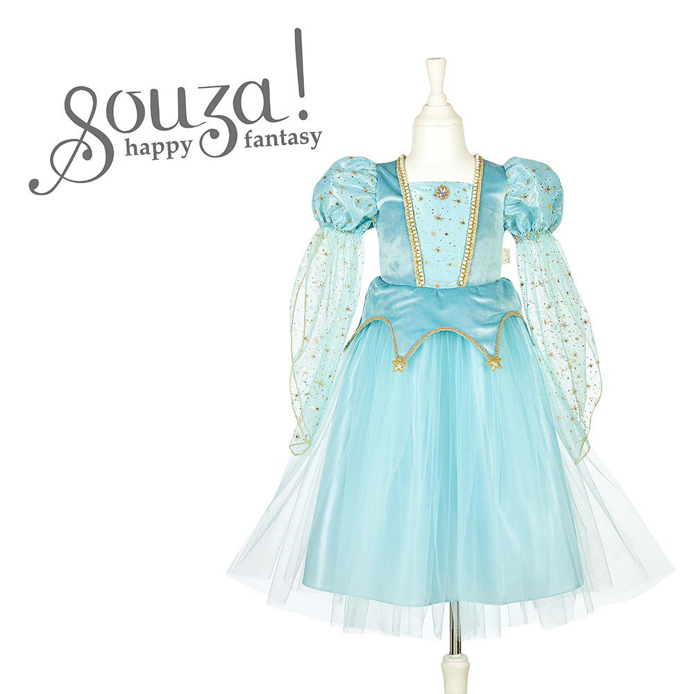 Souza! Kostium – Sukienka księżniczka/wróżka Victoria to bajkowe przebranie dla dziewczynki, które zachwyca elegancją i detalami. Sukienka ma jasnobłękitny kolor ozdobiony złotymi aplikacjami i wykończeniami. Wykonana została z tiulu, satyny i aksamitu, co nadaje jej wyjątkowego uroku. Ma długie bufiaste rękawy, trójwarstwową spódniczkę i jest zapinana z tyłu na suwak. To kostium, który doskonale sprawdzi się podczas balów przebierańców, Halloween, przedstawień czy tematycznych urodzinek. Będzie także pięknym prezentem dla dziewczynki, która marzy o wcieleniu się w rolę księżniczki lub wróżki.