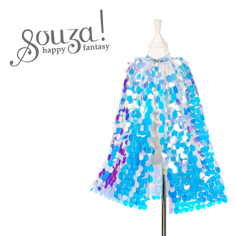 Peleryna syrenki Lorelie marki Souza! to wyjątkowo efektowne przebranie dla dziewczynki, które zachwyca połyskiem i starannym wykonaniem. Uszyta ze zwiewnego, lekkiego tiulu, została obszyta dużymi holograficznymi cekinami w odcieniach niebieskiego i fioletowego, które pięknie imitują syrenie łuski. Całość dopełnia eleganckie zapięcie pod szyją – guziczki-perełki na pętelkę.