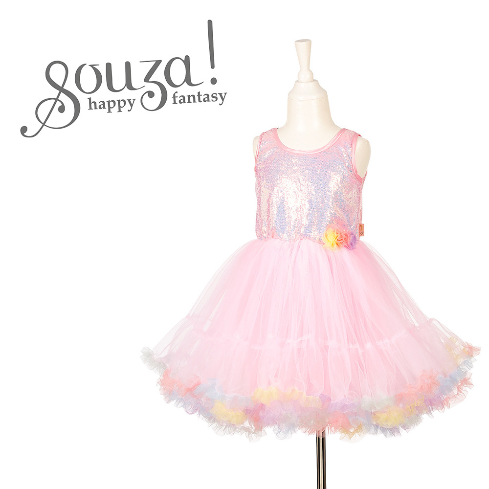 - Souza! Sukienka wizytowa Jocelyne – jasnoróżowa, z cekinową górą, tiulem i kwiatami. Dla dziewczynki 3-4 lata, lub 5-7 lat. Idealna na przyjęcia, bale i prezent.