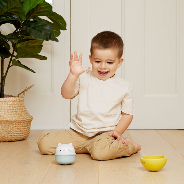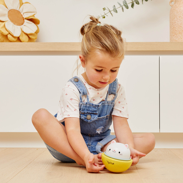 Rocking Rollers – Kot od Tiger Tribe to zabawka, która rośnie razem z dzieckiem i oferuje dwufunkcyjną zabawę: kołysanie i jazdę! Uroczy kotek najpierw delikatnie buja się na podstawce, a po jej zdjęciu – wystarczy nacisnąć jego główkę i obserwować, jak sunie po podłodze na wbudowanych kółkach.