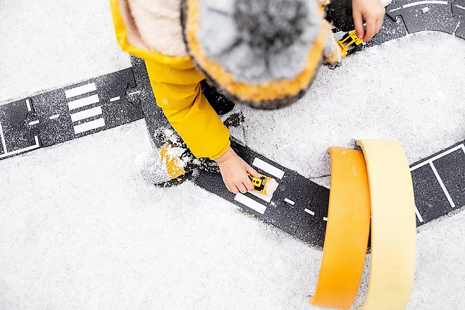 Dzieci mogą po stworzonym przez siebie torze jeździć “resorakami”, samochodzikami LEGO lub drewnianymi pojazdami oraz łączyć go ze wszystkimi innymi swoimi zabawkami.