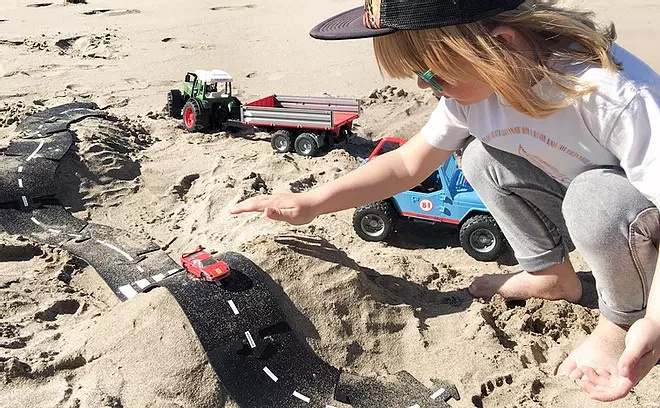 Dzieci mogą po stworzonym przez siebie torze jeździć “resorakami”, samochodzikami LEGO lub drewnianymi pojazdami oraz łączyć go ze wszystkimi innymi swoimi zabawkami.