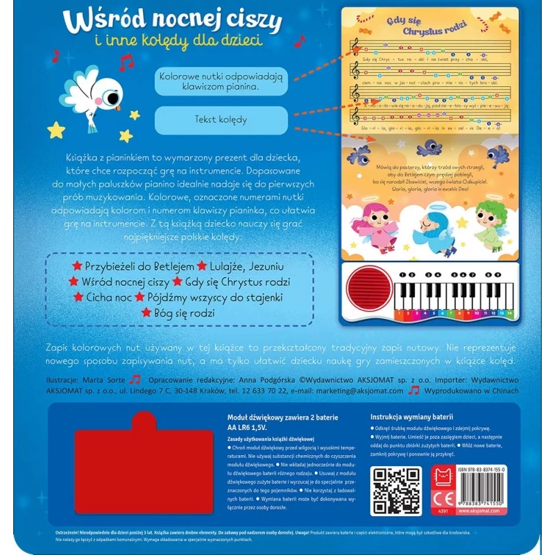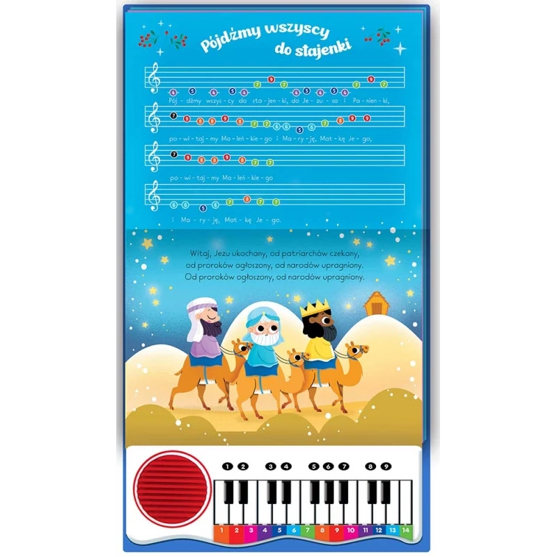 Wśród nocnej ciszy i inne kolędy dla dzieci 4–6 lat to niezwykła książka muzyczna z wbudowanym pianinkiem i uproszczonymi zapisami nutowymi siedmiu najpiękniejszych polskich kolęd. Dziecko może samodzielnie zagrać i zaśpiewać każdą z nich, rozwijając słuch muzyczny, poczucie rytmu i wrażliwość artystyczną.