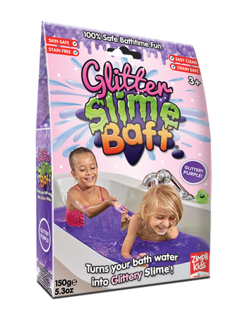 Od dziś zabawa w wannie będzie niesamowitym doświadczeniem dla Twojego dziecka. Dzięki proszkowi Slime Baff Glitter powstanie prawdziwie oślizły, kolorowy i błyszczący glut, który zapewni mnóstwo frajdy podczas kąpieli. Wystarczy dosypać proszku do wody, a wytworzy się slime, idealny do sensorycznej zabawy. Przyciągający wzrok kolor, żelowa konsystencja i śliska faktura aż proszę się, by dotykać, przelewać i rozdzielać gluty. Choć brzmi to nieco odrażająco, dzieci pokochają ten rodzaj zabawy. Slime to uczta dla zmysłów i poznawcza przygoda. Maluch z przyjemnością będzie przyglądał się magicznemu procesowi zamiany wody ciągnący się szlamik. Produkt został przebadany dermatologicznie i jest całkowicie bezpieczny dla wrażliwej skóry najmłodszych użytkowników. Warta podkreślenia jest jego biodegradowalność, przyjazność środowisku oraz łatwość w czyszczeniu. Glut rozcieńczony specjalnym proszkiem i wodą nie pozostawia śladów na wannie i łatwo się spłukuje. Zabawa w robienie glutów to sprawdzony sposób na nudę domu i w przedszkolu.