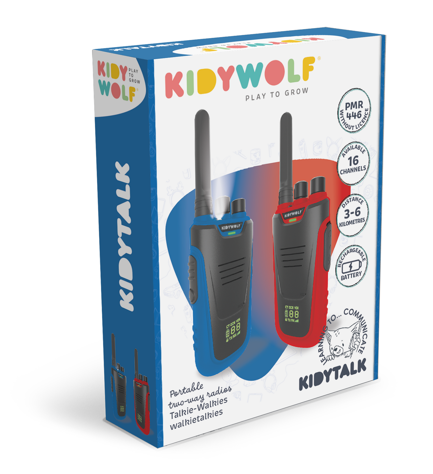 Zestaw krótkofalówki Kidywolf - walkie talkie - niebiesko-czerwone